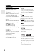 Precautions 1. Recording Copyright—Unless it’s for personal use only, recording copyrighted material is illegal without the permission of the copyright holder. 2. AC Fuse—The AC fuse inside the unit is not user-serviceable. If you cannot turn on the unit, contact your Onkyo dealer. 3. Care—Occasionally you should dust the unit all over with a soft cloth. For stubborn stains, use a soft cloth dampened with a weak solution of mild detergent and water. Dry the unit immediately afterwards with a clean cloth.
