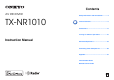 Contents AV RECEIVER TX-NR1010 Safety Information and Introduction ............2 Table of Contents ...........................................6 Connections .................................................13 Turning On & Basic Operations..................23 Instruction Manual Advanced Operations ..................................54 Controlling Other Components...................88 Appendix .......................................................