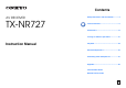 Contents AV RECEIVER TX-NR727 Safety Information and Introduction ............2 Table of Contents ...........................................6 Connections .................................................12 Turning On & Basic Operations..................21 Instruction Manual Playback........................................................29 Advanced Operations ..................................52 Controlling Other Components...................76 Appendix ...........................................
