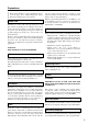 Troubleshooting guide If the RDA-7.1 fails to function normally, first check the following points before contacting your Integra Research dealer. If the problem is not solved after going through the following list, unplug the power cord and contact your Integra/Onkyo authorized service center. POWER No power. • Power cord is not correctly plugged into AC outlet/ Inlet. ➞ Plug the power cord into the AC outlet/Inlet properly. • Power switch is not set to ON position. ➞ Set the power switch to ON.