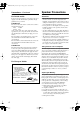 HT-S9100THX_En.book Page 3 Friday, June 27, 2008 4:00 PM Precautions 1. Recording Copyright—Unless it’s for personal use only, recording copyrighted material is illegal without the permission of the copyright holder. 2. AC Fuse—The AC fuse inside the unit is not userserviceable. If you cannot turn on the unit, contact your Onkyo dealer. 3. Care—Occasionally you should dust the unit all over with a soft cloth. For stubborn stains, use a soft cloth dampened with a weak solution of mild detergent and water.