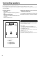 Connecting speakers • This receiver is designed to produce optimum sound quality when speakers with impedances within the specified ranges are connected. Please check the following information and choose speakers with appropriate impedances for the connections. FRONTSPEAKERS: SURROUNDSPEAKERS: CENTERSPEAKER: A or B: 6 ohms min./speaker 6 ohms min./speaker 6 ohms min.