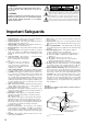 Contents Before using Important Safeguards ........................................ 2 Precautions ........................................................ 3 Features ............................................................. 4 Supplied accessories ......................................... 4 Before operating this unit .................................