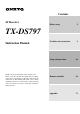 Contents AV Receiver Before using 2 Facilities and connections 8 TX-DS797 Instruction Manual Thank you for purchasing the Onkyo AV Receiver. Please read this manual thoroughly before making connections and plugging in the unit. Following the instructions in this manual will enable you to obtain optimum performance and listening enjoyment from your new AV Receiver. Please retain this manual for future reference.