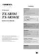 Contents Introduction AV Receiver TX-SR501 TX-SR501E Instruction Manual Important Safeguards................................................2 Precautions................................................................3 Supplied Accessories ................................................4 Features.....................................................................4 Before Using the TX-SR501/TX-SR501E ...............5 Controls & Connectors .............................................