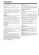 Precautions 1. Recording Copyright Recording of copyrighted material for other than personal use is illegal without permission of the copyright holder. 2. AC Fuse The fuse is located inside the chassis and is not user-serviceable. If power does not come on, contact your Onkyo authorized service station. 3. Care From time to time you should wipe the front and rear panels and the cabinet with a soft cloth.