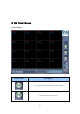 You can setup the DVR control environment. You exit the program Function Keys Descriptions You connect to the DVR after “client setup”. You set up information to get connected to the server. You log-in to access the DVR. You can see one channel in full mode. When double-clicked, you can have sequential display. You can see four channels in a quad mode. When double-clicked, you can have sequential quad display. You can see eight channels in 8ch-split mode.