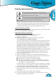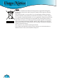 Usage Notice Precautions Please follow all warnings, precautions and maintenance as recommended in this user’s guide. ▀■ Warning- Do not look into the projector’s lens when the lamp is on. The bright light may hurt your eyes. ▀■ Warning- To reduce the risk of fire or electric shock, do not expose this projector to rain or moisture. ▀■ Warning- Please do not open or disassemble the projector & box as this may cause electric shock.