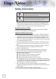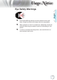 Usage Notice English Eye Safety Warnings ▀■ Avoid staring/facing directly into the projector beam at all times. Keep your back to the beam as much as possible. ▀■ When projector is used in a classroom, adequately supervise students when they are asked to point out something on the screen. ▀■ In order to minimize the lamp power, use room blinds to reduce ambient light levels.
