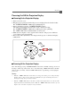 English Powering On/Off the Projection Display u Powering On the Projection Display. 1. Remove the lens cover 2. Plug the power cord into the back of the projector and plug it into the electrical outlet. The “POWER/STANDBY” LED indicator will flash green. 3. Turn on the lamp by pressing “ POWER/STANDBY” button. The startup screen displays and starts 30 seconds countdown for lamp . The “POWER/STANDBY” LED indicator will lit green and stop flashing. The “LAMP” LED indicator will flash amber for 30 seconds.