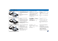 FITTING THE BATTERY 1 2 3 4 5 1. Remove the battery cover. (1~3) 1. Extraiga la tapa de la batería. 2. Insert battery with electrical contacts (1~3) facing downward and away from 2. Inserte la batería con los contactos lens. (4) eléctricos mirando hacia abajo y 3. Slide the battery cover back into alejados de la lente. (4) place. (5) 3. Vuelva a colocar en su sitio la tapa de la batería. (5) 1. バッテリー カバーを取り外します。 (1~3) 2. 電気接触部を下に向け、レンズか ら離してバッテリーを入れます。 (4) 3. バッテリー カバーを元に戻します。 (5) 1.