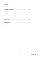 Index Important Safeguards………………………………………….. 2 Air purifier Description…………………………………………..3 Function Description……………………………………………. 4 How to use………………………………………………………..5 Maintenance………………………………………………………6 Troubleshooting…………………………………………………..