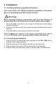 3 Installation 3.1 Installing batteries (supplied) in the phone You must install 4 AA Alkaline batteries (supplied) in the phone base, or the display and Caller ID will not work. Warnings Before opening the battery compartment, make sure the telephone is disconnected from the telephone line and the mains power supply. 1. Use a flat-blade screwdriver or tip of a pen to lift and remove the battery compartment door. 2. Insert four AA batteries into the compartment as indicated by the polarity symbols. 3.
