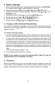 4 Basic settings 1. After installing the batteries, the display should flash the word ENGLISH”. If not press and hold for approximately 4 seconds. 2. Select the desired language using or . Press DELETE button. 3. Select the desired contrast setting (2=Default) using or . Press DELETE button. 4. Set the hour (00-23) using or . Press DELETE button. 5. Set the minute using or . Press DELETE button. 6. Set the day using or . Press DELETE button. 7. Set the month using or . Press DELETE button. 4.