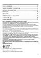 Table of contents......................................................................... 3 Safety Information and Warnings................................................. 4 Controls and Connectors.............................................................. 5 Installation................................................................................... 8 Operations................................................................................. 11 UHF channels and frequencies...........................