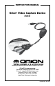 instruction Manual Orion® Video Capture Device #52181 Providing Exceptional Consumer Optical Products Since 1975 OrionTelescopes.com Customer Support (800) 676-1343 E-mail: support@telescope.com Corporate Offices (831) 763-7000 89 Hangar Way, Watsonville, CA 95076 © 2011 Orion Telescopes & Binoculars IN 433 Rev.