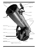 Finder scope Secondary mirror holder with 4-vane spider (not visible) Finder scope bracket Eyepiece Focuser Navigation knob Optical tube Tensioning knob Right side panel Front brace Eyepiece rack Primary mirror cell Handle IntelliScope Controller Port modular jack Top baseplate Computerized Object Locator (optional) Left side panel Figure 1.