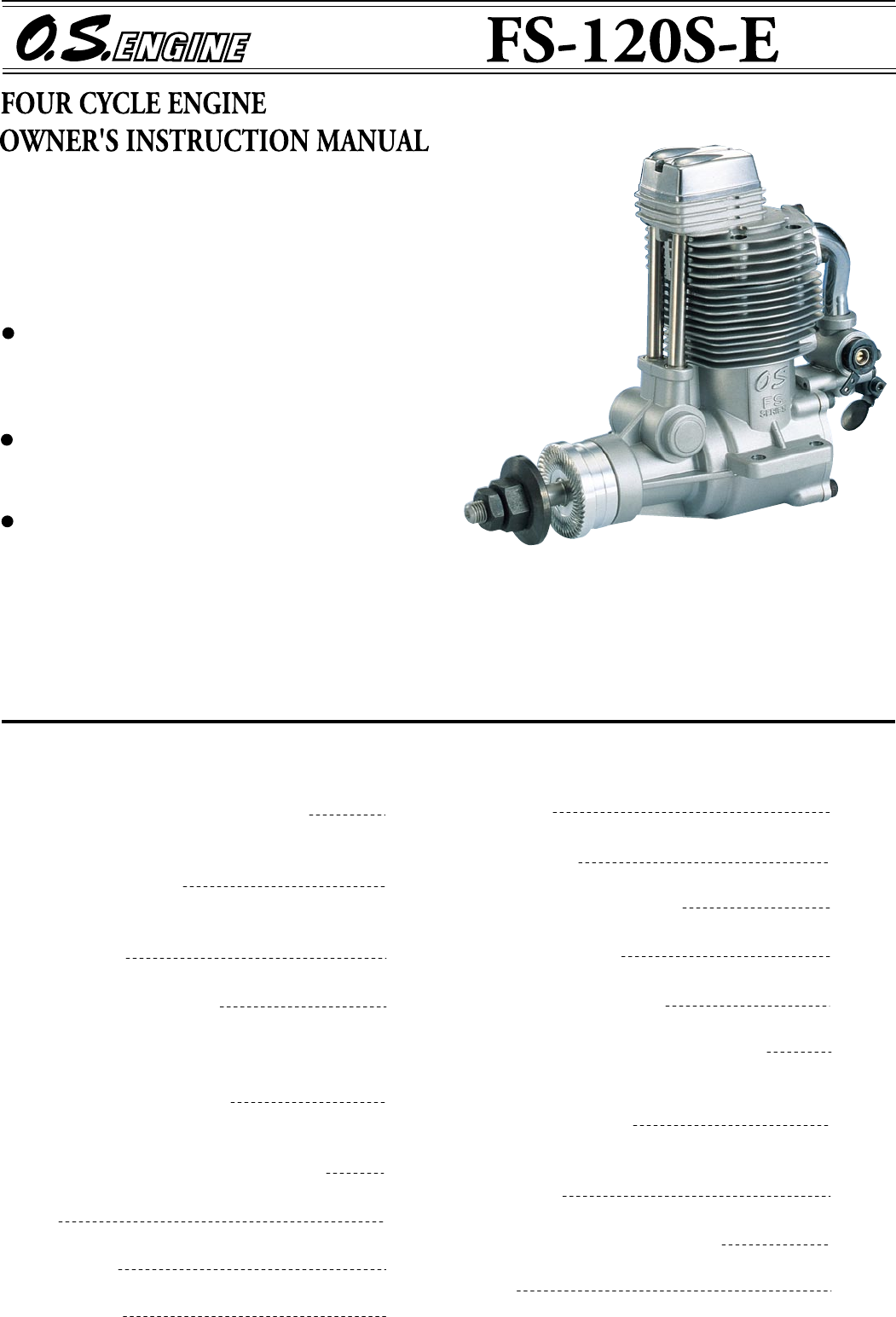 SAFETY INSTRUCTIONS AND WARNINGS ABOUT YOUR O.S. ENGINE WARNINGS • Never touch, or allow any object to come into contact with, the rotating propeller and do not crouch over the engine when it is running. Remember that your engine is not a " toy ", but a highly efficient internal-combustion machine whose power is capable of harming you, or others, if it is misused or abused. As owner, you, alone, are responsible for the safe operation of your engine, so act with discretion and care at all times.