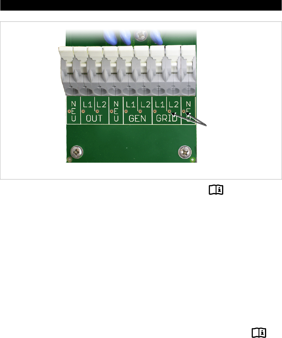 The Radian’s default condition is Off. Do not turn on any AC circuit breakers at this time.