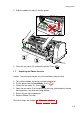 move the ribbon feed guide (4) into the fixing device (5) at the side.