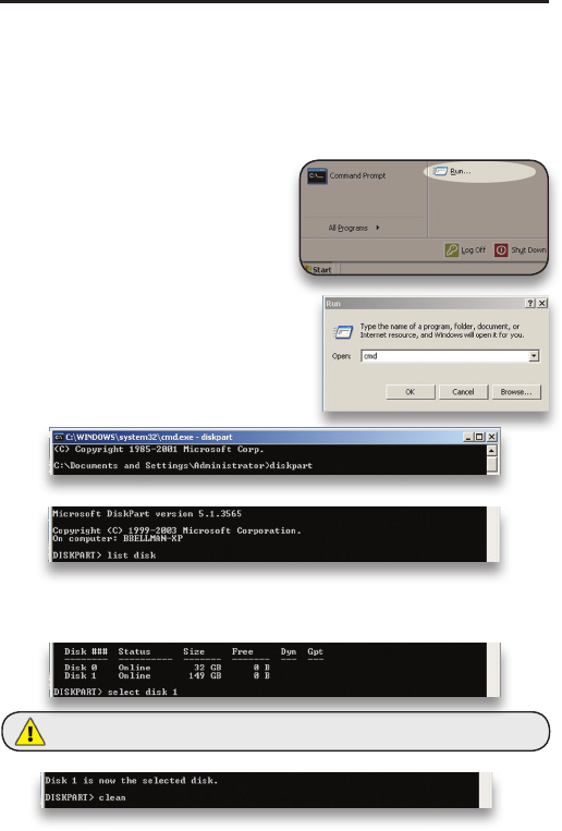 WARNING: The clean command will destroy ALL data on the disk you run it on!!! Be sure
