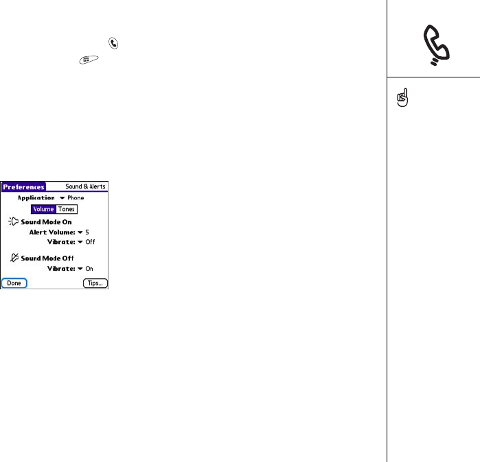 the side of your Treo smartphone to adjust ringer volume, and then press the Center