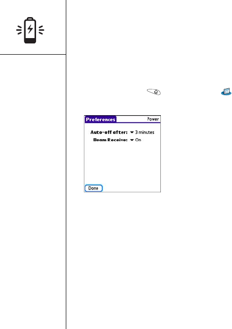 Power Preferences enable you to set the auto shutoff interval and the beam receive