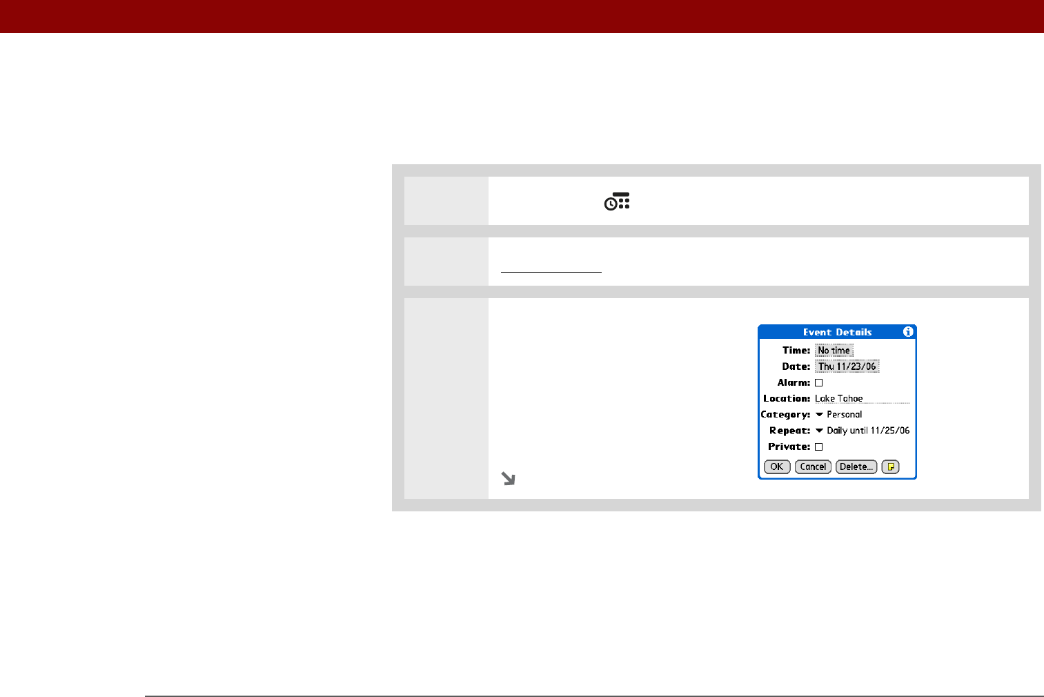 Entering a location or a note for an event
