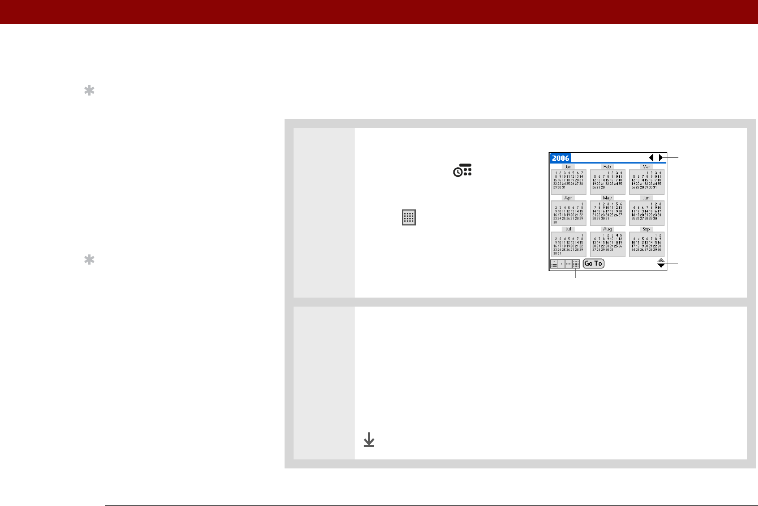 • Select the year selector to scroll to the previous or next year, or select Go To
