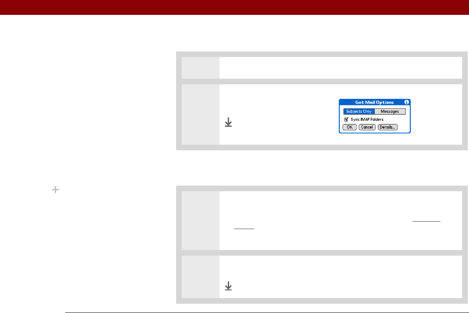 - Synchronizing handheld/mail server IMAP folders from the Options menu