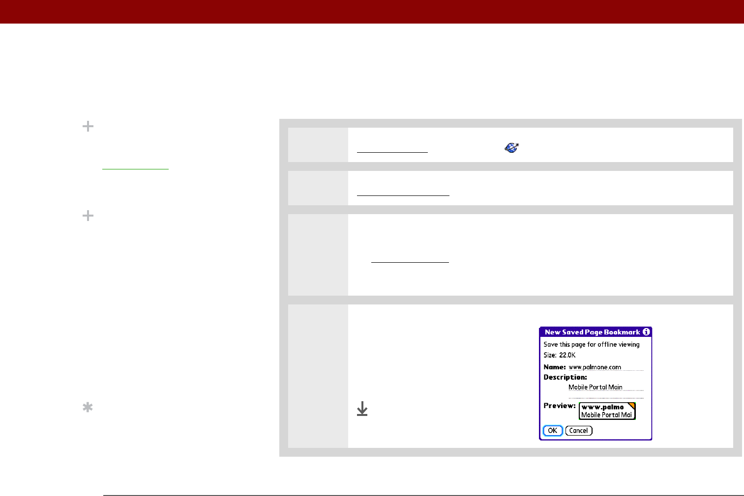 can create a saved page. The copy is stored on the handheld until you delete it.