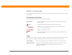 What’s in this guide? Each chapter contains step-by-step instructions with cues for action, links to detailed information, and sidebars. Step-by-step instructions How-to information. Look for these cues in instructions: Continued Done Cue at the bottom of a page that means the procedure continues on the next page. Cue that signals the end of the procedure. You’re done. [ ! ]IMPORTANT A step that you must follow; otherwise, you could experience an error or even lose information.