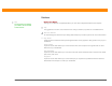 CHAPTER 12 Common Questions Tip Need more help with synchronizing your handheld? Open Palm Desktop software, go to the Help menu and select HotSync Online Troubleshooting Guide. • Reduce the brightness of the display. • Reduce the Auto-off after setting. • Use Keylock Preferences to prevent your handheld from being turned on accidentally. • Minimize use of the expansion card slot. What do I do if I can’t synchronize with my computer? Make sure the HotSync® cable is connected securely.
