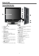 View of Unit Front and Right Side Panel 8 2 1. Colour TFT screen 2. Speakers 3. Power Indicator During work, it is blue; in standby mode, it is red. 4. Remote Sensor 5. SOURCE button Press repeatedly to select TV, COMPOSITE, S-VIDEO, COMPONENT, VGA or DVD mode. 6. MENU button Press to enter or exit system setup menu. 7. CH button Press to select channels in TV mode. On system setup menu, the same function as direction buttons. 8. VOL button Press to decrease or increase the volume. 2 9. 10. 11. 12. 13.
