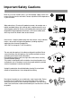 Important Safety Cautions When any unusual situation occurs, turn off the power supply at once and remove the plug from the wall outlet. Contact a qualified service department in your local area. Water and moisture - Do not use this product near water - for example, near a bathtub, washbowl, kitchen sink, or laundry tub, in a wet basement, or near a swimming pool, and the like.
