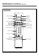 Identification of controls (continued) Remote Control Power on/Standby Sound Mute Channel up Volume down Volume up Channel down To enter into MENU To exit OSD menu Colour/Sound system select Zoom select Auto correct picture Sleep timer Clock/Timer setting Previous channel Picture mode select On-screen display Channel select Input signal select / Still picture OSD position select Adjusting Bass Adjusting Treble 6