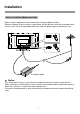 Installation Antenna installation/Adaptor connection Before using this equipment, please connect the AC power adaptor correctly. Optimum reception of colour requires a good signal and will generally mean that an outdoor aerial must be used. The exact type and position of the aerial will depend upon your particular area. AC power adapter Notes: Turn off the power firstly when you connect a outdoor antenna to the Antenna input terminal.