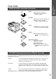 Operation Chart Overview Overview Useful for office, more than 4 functions 1 Copier 2 Facsimile 3 Printer 4 Scanner 5 Application Software C Document Manager C Document Viewer C Document Scanner C Utilities (Status Monitor, Phone Book Editor, Device Configuration Editor) C Can copy up to Legal size. C Available to copy text/photos/ halftones originals. C Plain paper Super G3 compatible Fax. C Can be used as a regular telephone with optional handset.