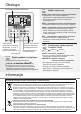 Schemat obsługi Spis treści Przygotowanie zdalnego sterowania Otwórz pokrywę, aby skorzystać z przycisków 1 Naciśnij F / ON OF CLOCK UP DOWN 2 Naciskaj TIMER lub , aby wybrać aktualny dzień tygodnia TIMER/CLOCK MODE UP OFF/ON DOWN CLOCK 1 SET 3 Naciśnij , aby zatwierdzić ustawienie 4 Powtórz kroki 2 i 3, aby ustawić aktualny czas SELECT SET CANCEL 2 Zasady bezpieczeństwa.......... 4-5 Obsługa................................... 6-7 Informacje...............................
