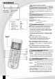 Rövid kezelési ismertetô A távvezérlô elôkészítése Húzza ki az elemtartó fedelét. Helyezzen be 2 db AAA vagy R03 fajtájú elemet. (Az elemek kb. 1 évig használhatók.) Zárja a fedelet. Nyomja meg az óra gombot [CLOCK]. Állítsa be az óraidôt. Nyugtázza [SET]. (Automatikus) (Fûtés) (Párátlanítás) (Hûtés) Válassza ki a kívánt üzemmódot. A mûködés indítása/leállítása. Válassza ki a kívánt hômérsékletet. 18 F567918 A készülék megfelel a 2004/108/EK 9(2) szakaszának.