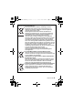 DMC-LX5EG-VQT2W86_ger.book 33 ページ 2010年7月8日 木曜日 午後7時0分 Technische Daten Digital-Kamera: Spannungsquelle: Sicherheitshinweise Gleichspannung 5,1 V Leistungsaufnahme: 1,4 W (Bei der Aufnahme) 0,8 W (Bei der Wiedergabe) Effektive Pixel der Kamera: Bildsensor: Objektiv: 10.100.000 Pixel 1/1,63q CCD, Gesamtpixelzahl 11.300.000 Megapixels, Primärfarbenfilter Optischer 3,8kZoom, fl5,1 mm bis 19,2 mm (Kleinbild-Äquivalent: 24 mm bis 90 mm)/F2.0 (Wide) bis F3.3 (Tele) Max.