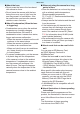 Advanced-Shooting ■ The available flash range to take pictures in Intelligent ISO are as follows: ISO LIMIT Available flash range ISO MAX400 60 cm to 4.3 m (Wide) 1.0 m to 2.4 m (Tele) ISO MAX800 80 cm to 6.0 m (Wide) 1.0 m to 3.4 m (Tele) ISO MAX 1.15 m to 8.6 m (Wide) 1600 1.0 m to 4.8 m (Tele) ■ Shutter speed for each flash mode Flash mode Shutter speed (sec.) 1/30 to 1/2000 : AUTO : AUTO/ 1/30 to 1/2000 Red-eye reduction : Forced 1/30 to 1/2000 FLASH ON : Forced ON/Red-eye reduction : Slow sync.