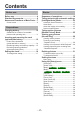 Contents Application (Record) Application (View) Taking pictures with your own settings [Normal Picture] Mode......................... 40 How to adjust focus............................. 41 Using zoom........................................... 43 Different playback methods [Playback Mode]................................... 64 Taking pictures with flash.................... 45 Taking pictures with self-timer............ 47 Taking pictures with Exposure Compensation.......................................
