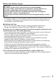 Contents Information for Your Safety .......2 Before use ...................................7 Standard accessories ................8 Names and Functions of Main Parts .................................10 Charging the battery ................12 Inserting and removing the card (optional)/the battery .......13 Sequence of operations ...........14 Reading the Operating Instructions (PDF format) ........15 Installing supplied software (PHOTOfunSTUDIO) .................16 Specifications ..........................