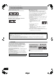 EH65.book Page 33 Friday, September 1, 2006 9:46 AM Playing DivX discs, MP3 discs and still pictures (JPEG/TIFF) DivX Playable discs [-R] [CD] File format DivX ≥Files must have the extension “.DIVX”, “.divx”, “.AVI” or “.avi”. Number of folders Maximum number of folders recognizable: 300 folders (including the root folder) Number of files Maximum number of files recognizable§1: 200 files Support version DivX ver.3.11, 4.x, 5.