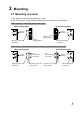 3. Mounting 3-1 Mounting of sensor ●● The tightening torque should be 0.2N·m or less. ●● M2 screw and nut, spring washer, and flat washer are accessory of this product. When tapping in mounting section (Unit: mm) 8.5 Sensing direction Sensing direction 8.5 M2×0.4 Tapping depth: 7 M2 screw (length 10) (accessory) M2×0.