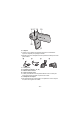 Préparatifs Noms et Fonctions des Éléments Principaux 1 2 3 4 1 Écran ACL (l 27) Du fait de limitations de la technologie de production ACL, il pourrait y avoir des petites taches brillantes ou sombres sur l’écran ACL. Cependant, cela n’est pas un mauvais fonctionnement et n’affecte pas l’image enregistrée. ≥ Il peut s’ouvrir d’un maximum de 90o. ≥ Il peut être pivoté jusqu'à 180o A vers l'objectif ou jusqu'à 105o B vers la direction opposée.