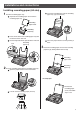 Installations and connections Installing recording paper (A4 size) 1 Install the recording paper tray. 1 3 Insert the recording paper into the recording paper tray. (Up to 30 sheets) Separate the recording paper cover from the recording paper tray. Printing side is o n the bac k Recording paper cover Recording paper tray 2 Insert the left tab on the recording paper tray into the left slot of the main unit. 3 Insert the right tab into the right slot of the main unit.