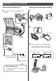 Installations and connections Connecting the main unit Setting up the portable handset 1 main Connect the cord and place the handset on the unit. 1 Click Power outlet (AC 100 V) AC adaptor Handset Charger Plug 2 Black Red Battery cover Connector 停電用 電話機 Click 回 (電話回線 線へ) Click Battery 3 Charge the battery in the charger for 10 hours. Click ● Telephone line cord After your Panasonic battery is fully charged, it will last up to about 7 hours of conversation.