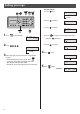 Setting your logo Example: Micah 1. Press once. アナタノナマエ? M Cursor 2. Press six times. 3. Press six times. アナタノナマエ? Mi アナタノナマエ? Mic 1 Press 4. Press (Function/Edit). キノウアトウロクアモード ア ア ア ア ア ア ア シ シ [ ▼▲] オ ス to move the cursor to the next space and press four times. アナタノナマエ? Mic a 2 Press 5. Press . five times. アナタノナマエ? Mica h アナタノナマエ? Cursor 3 Enter your logo, up to 30 characters, using the dial keypad.